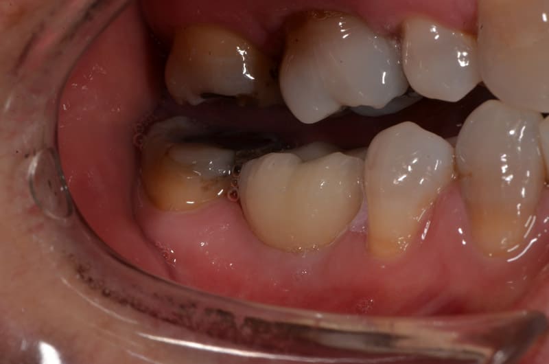 This patient had a lower molar tooth missing which affected her eating. We created a biocompatible implant and aesthetic crown, restoring her ability to chew properly and reducing the stress on the adjacent teeth.